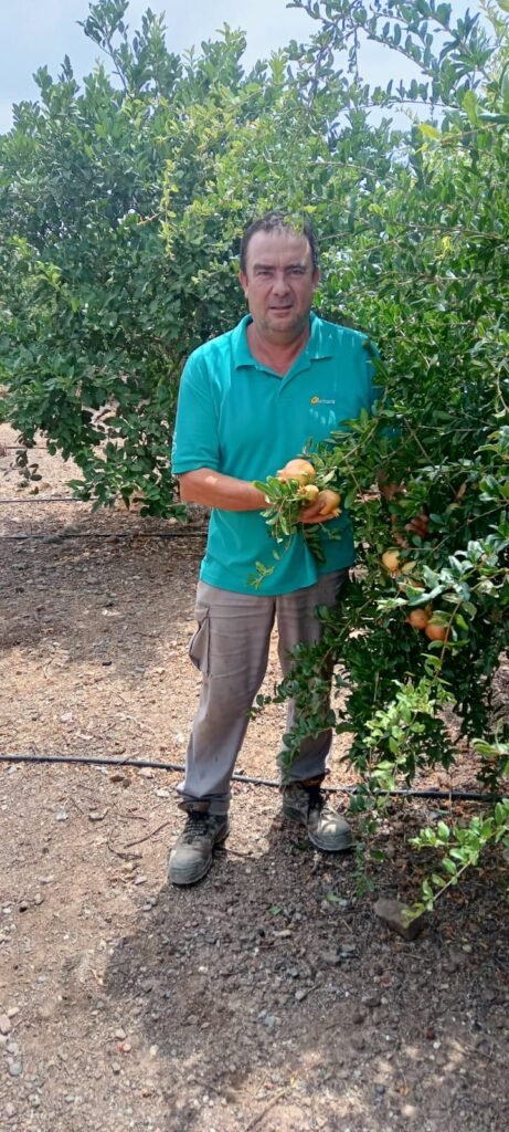 Emilio es una persona a la que estimo mucho y que lucha cada día por sacar adelante su finca y su negocio. Tiene una finca de cítricos y granados, además de una pequeña tienda local donde vende productos relacionados con el campo. Comenzó con la producción ecológica en 2015 y sigue apostando por este modelo con gran esfuerzo y dedicación.